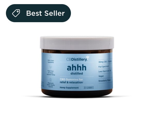 Looking for a CBD product that’s efficacious, conveniently pre-measured and delicious too? Look no further than our ahhh Distilled 30mg Full Spectrum CBD Gummies. Our expert botanists brought our OG CBD oil to life in gummy form so you can pop, chew and enjoy all the wellness benefits of a full spectrum blend of cannabinoids, other plant compounds and natural hemp terpenes on the go! Simply chew these strawberry-flavored 30mg gummies, enjoy, and find the relief you’re looking for.