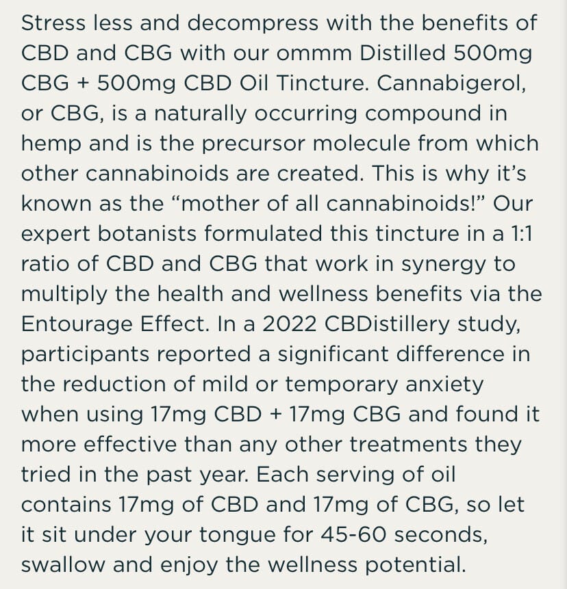 🛡️ 100% Satisfaction Guarantee: We're confident you'll love our OMMM CBG + CBD OIL TINCTURE. If you're not completely satisfied, we'll refund your purchase – no questions asked.